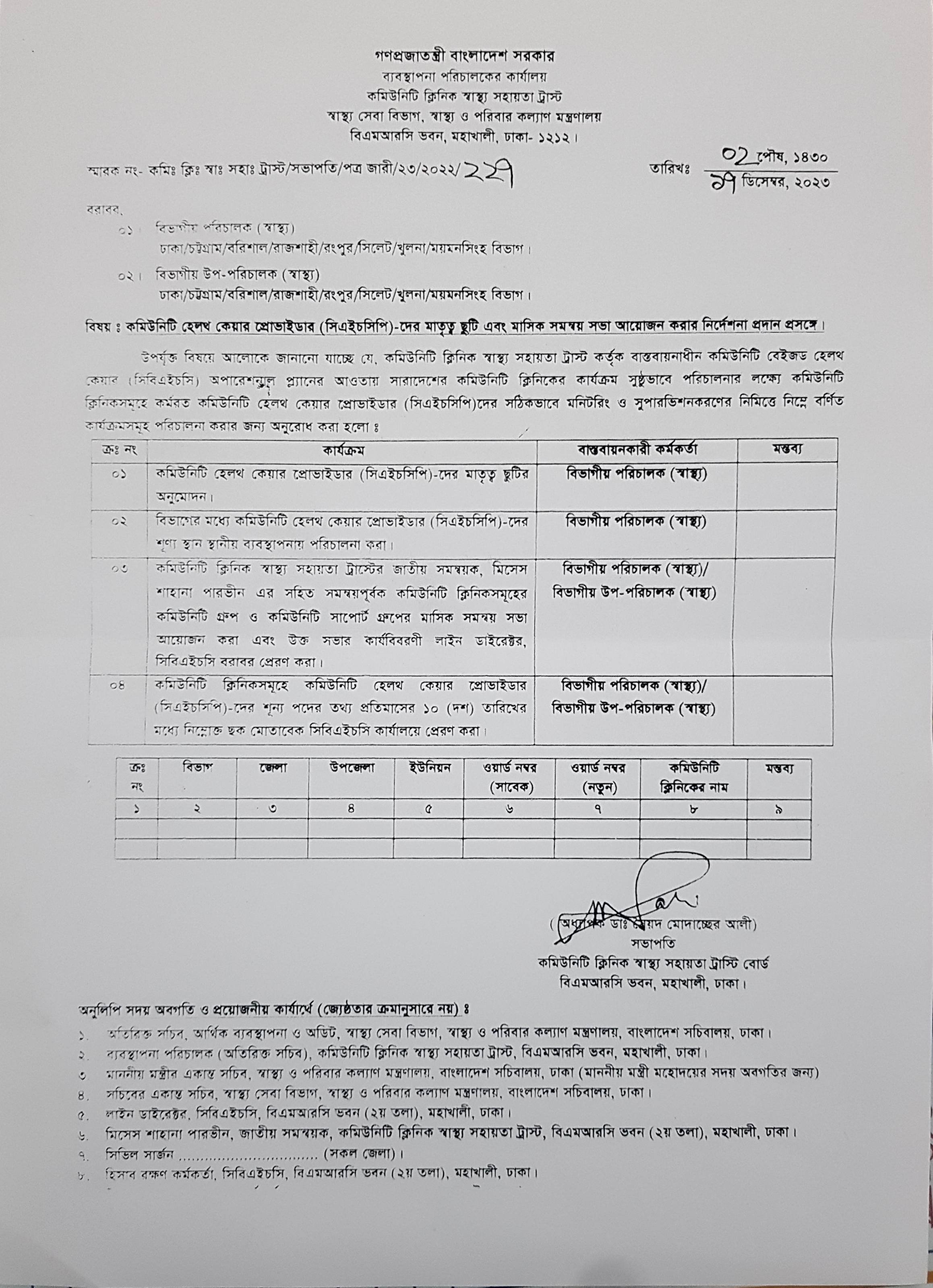 | শামীমা নাসরীন | Community Health Care Provider | অনুমোদিত | 2025-04-28 থেকে 2025-04-30 |