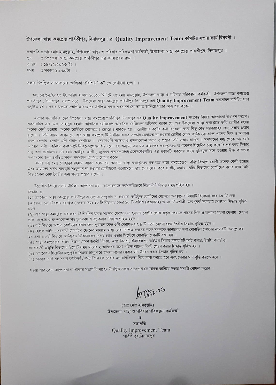 পার্বতীপুর উপজেলা স্বাস্থ্য কমপ্লেক্স এর বিশেষ সময় এবং অনুষ্ঠানের ছবি