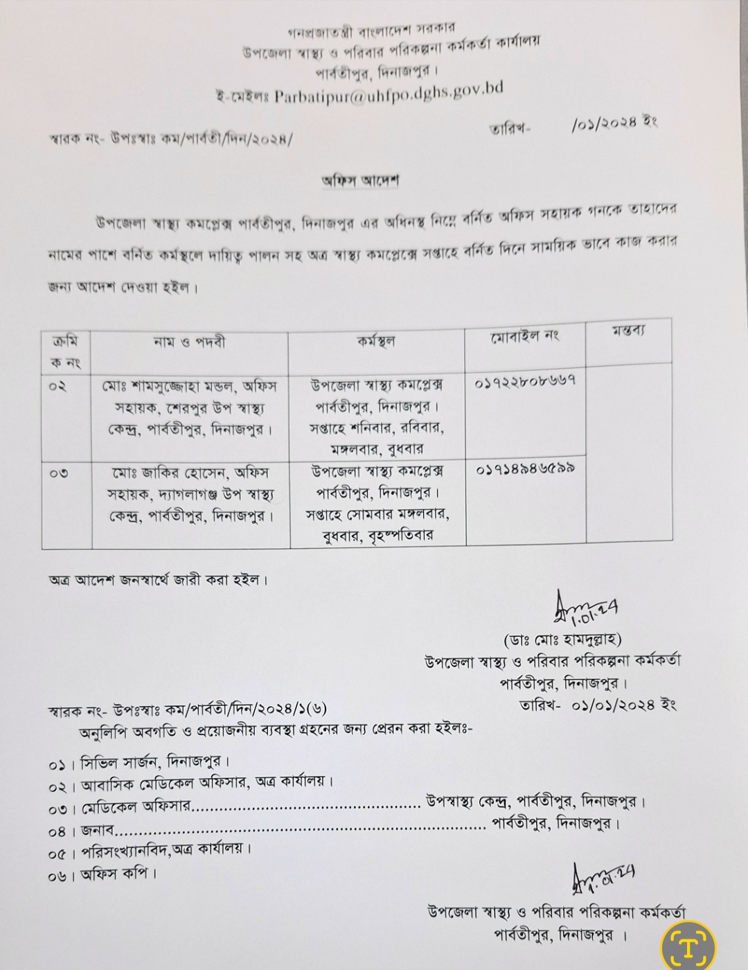 | মোছা: নাজলী খাতুন | Midwife | অনুমোদিত | 2025-05-03 থেকে 2025-05-05 |